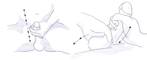 El desplazamiento de esta técnica debería hacerse en un solo sentido, deslizando los dedos sobre el miembro viril constantemente a partir de la base hacia el glande o la punta, jamás en sentido inverso. Cuando los dedos lleguen a la punta del miembro viril, usa tu otra mano para repetir el desplazamiento e ir alternando con el ritmo que más goces.